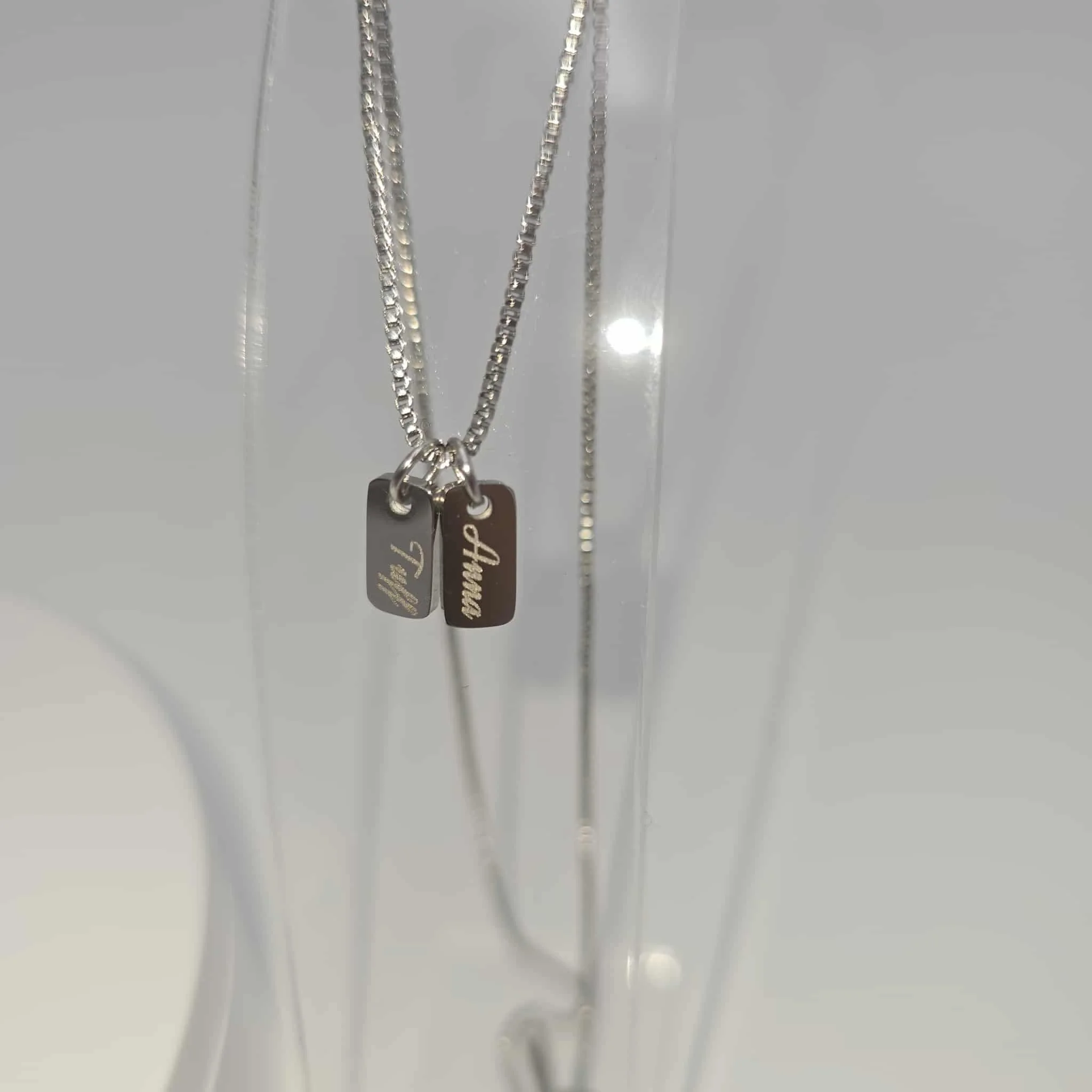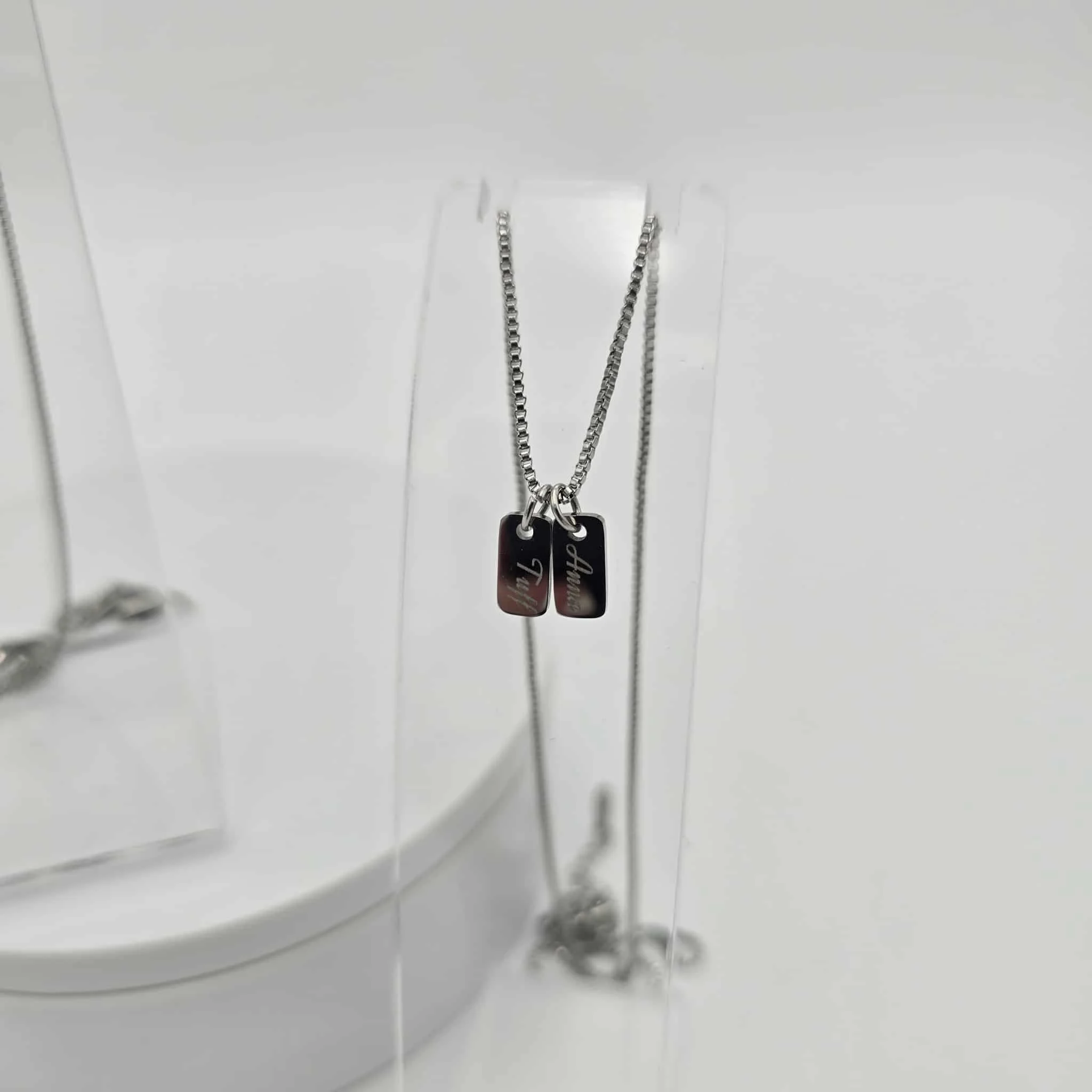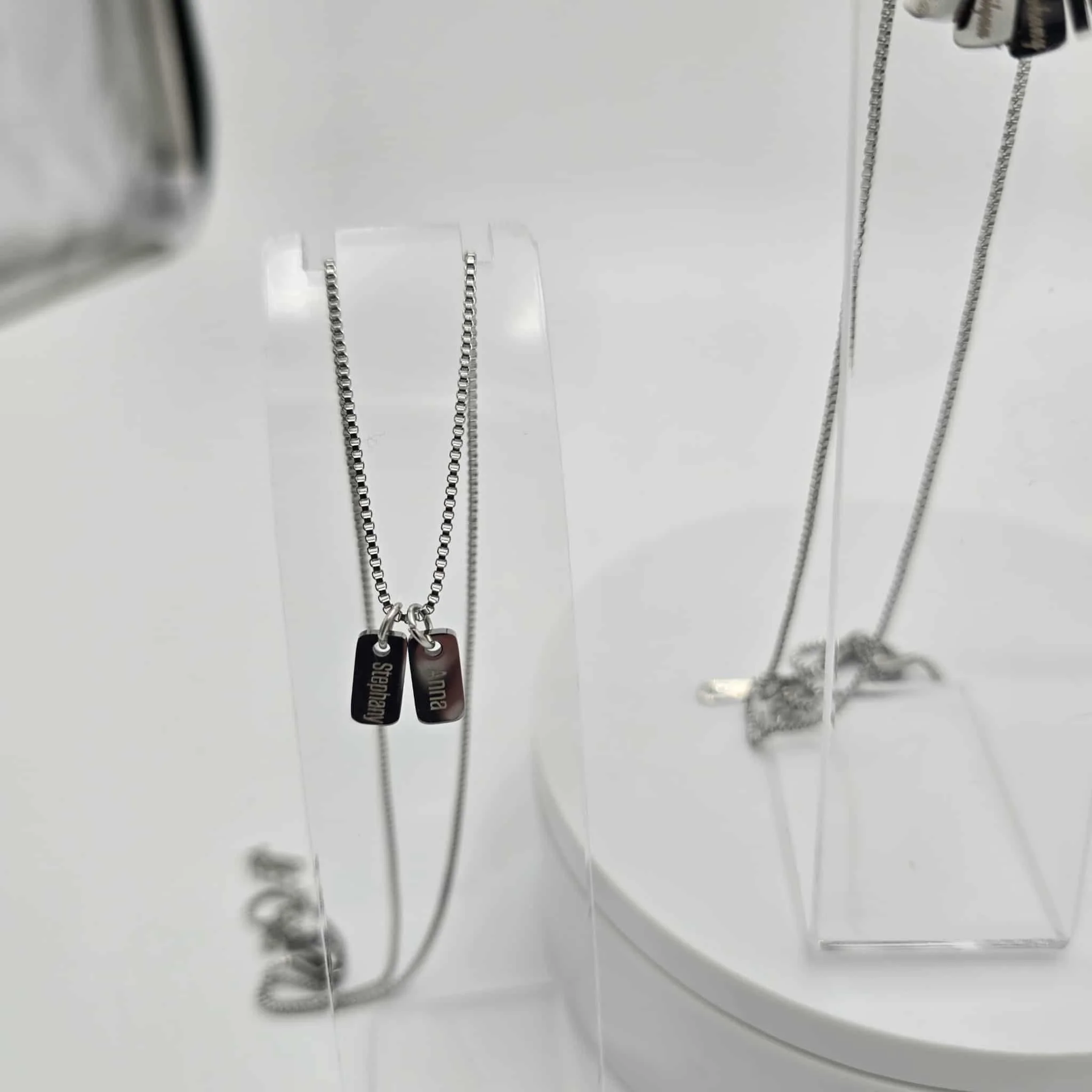 Our Custom Mini Tag Necklace is the perfect balance of simplicity and sentiment. Each tag is precision-engraved with your chosen names, dates, or words of meaning. Made from durable stainless steel, this timeless piece won’t tarnish or fade — ideal for everyday wear or as a heartfelt gift.