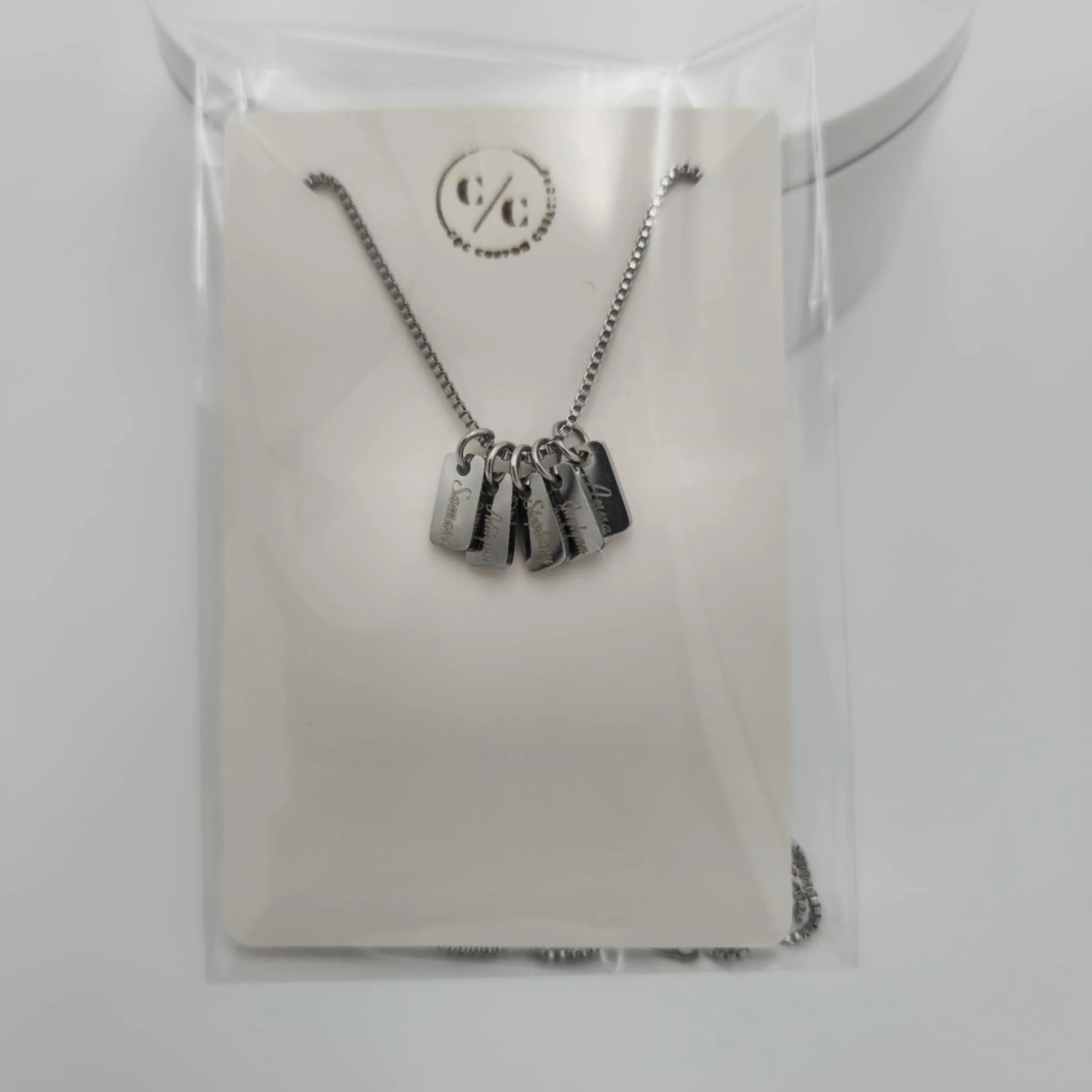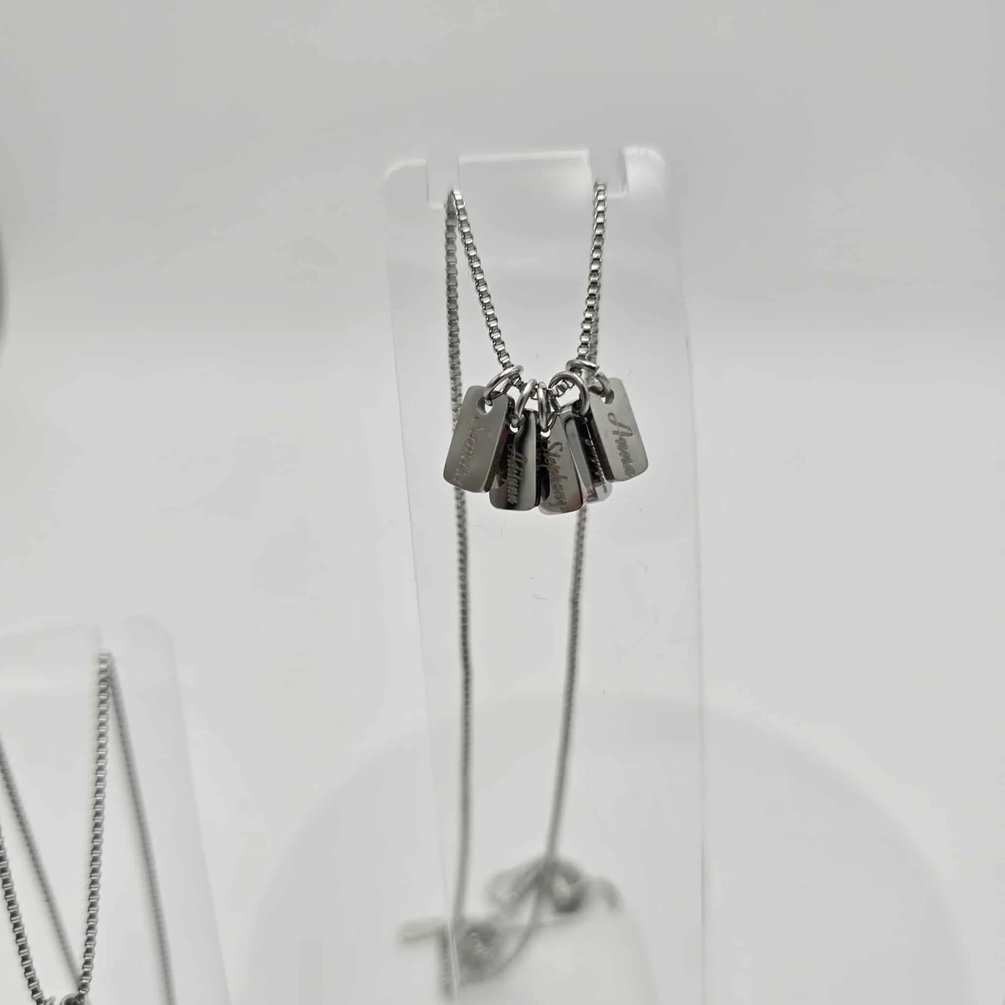 Each necklace can feature one or multiple mini tags to represent family members, friends, or loved ones — a subtle reminder of what matters most.